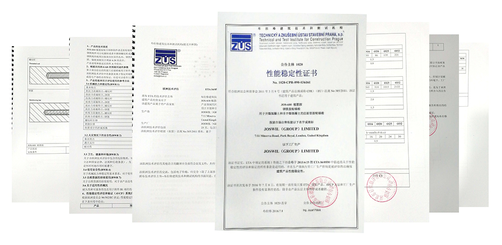 JOSWIL碼頭加固工程_環氧樹脂植筋膠,主體成分為環氧樹脂,抗濕熱老化可達50以上。來自工業發源地英國,通過歐洲ETA認證(ETA是歐洲技術認可(European Technical Approval)的英文縮寫。 建筑建材產品的ETA認證是在歐盟安全CE建筑產品指令89/106/EC (CPD)的六大基本要求的基礎上,對產品對于指定應用范圍的技術性能的有力證明)。